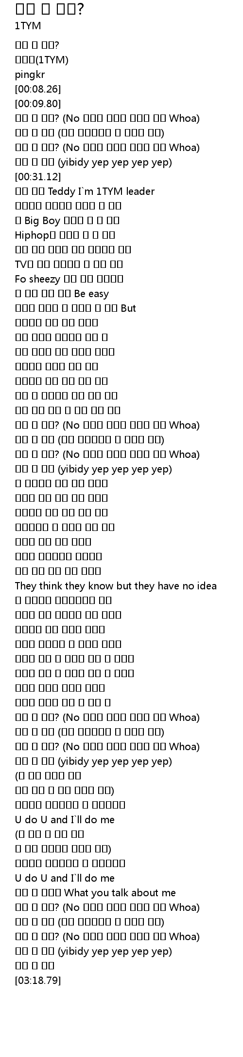 | [03:10.35] | 누가 날 알어 (yibidy yep yep yep yep) |
