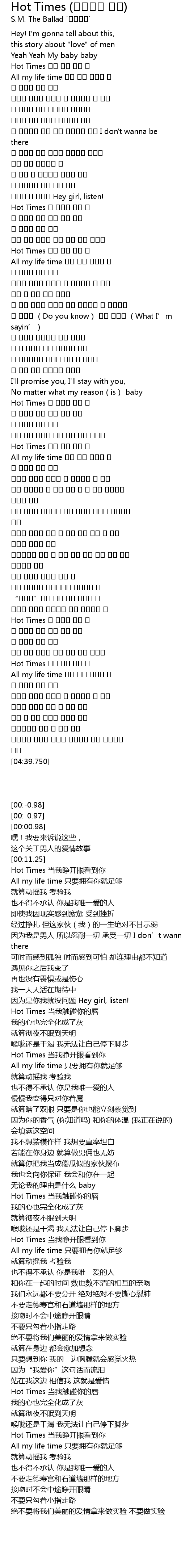 | [00:18.220] | Hot Times 내가 너를 눈뜰 때 |