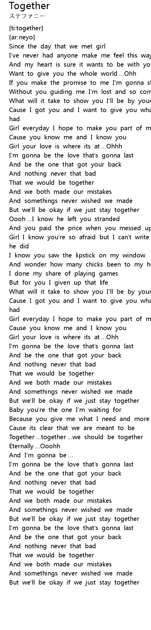 | [03:50.342] | But we' ll be okay if we just stay together |