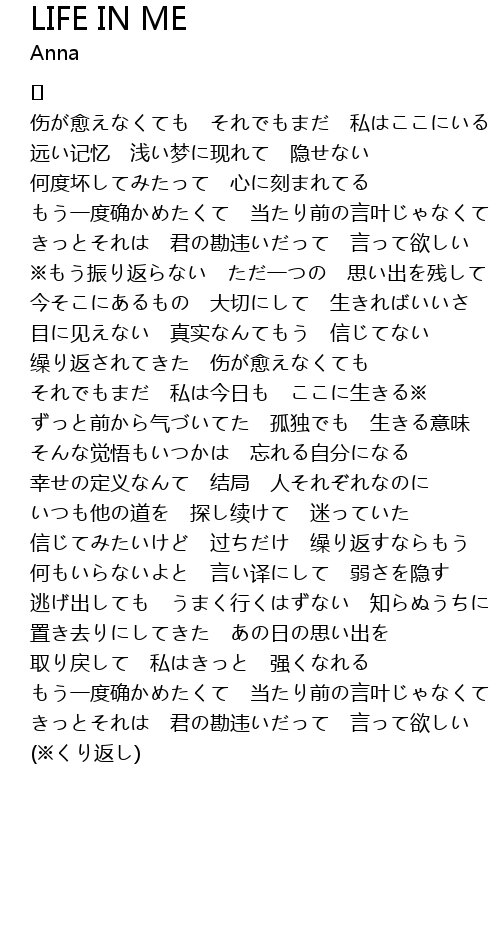 | Song | LIFE IN ME |
