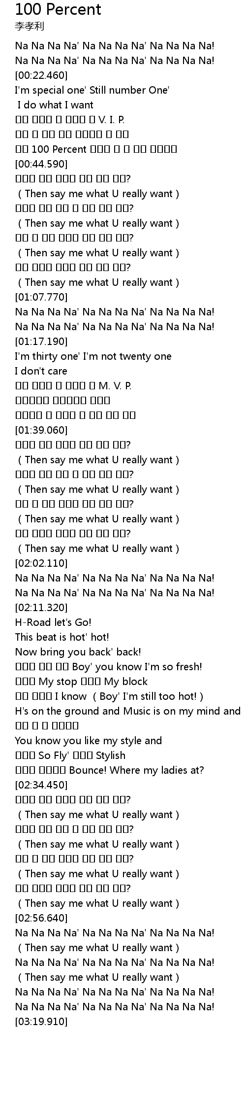 | [00:40.180] | 이젠 100 Percent 진짜가 된 것 같은 느낌이야 |