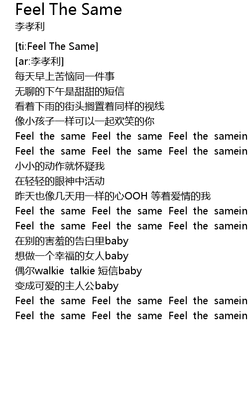 | [01:18.523] | Feel the same Feel the same Feel the samein love |