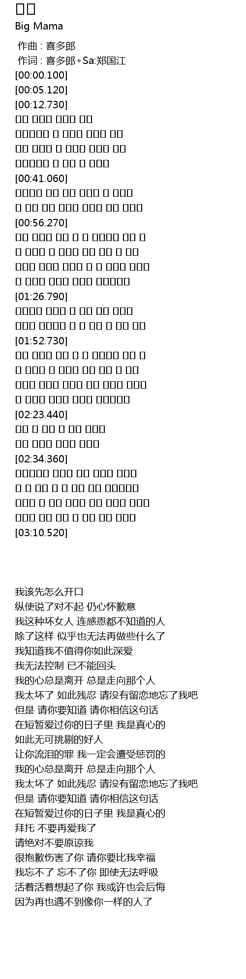| [00:00.33] | 作词 : 喜多郎+Sa:郑国江 |