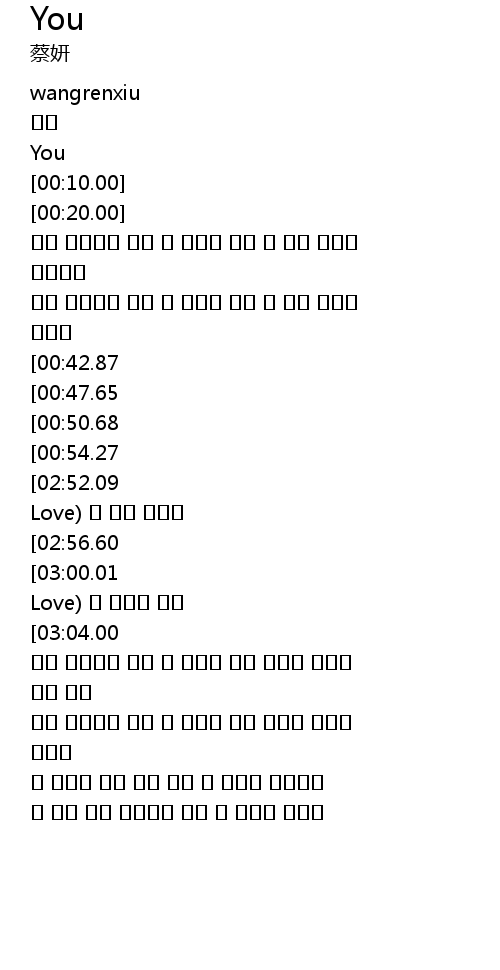 | [03:16.43][03:00.01][01:59.17][01:07.20] | (You Know) 난 네게 빠졌어 (My Love) 난 너만을 원해 |