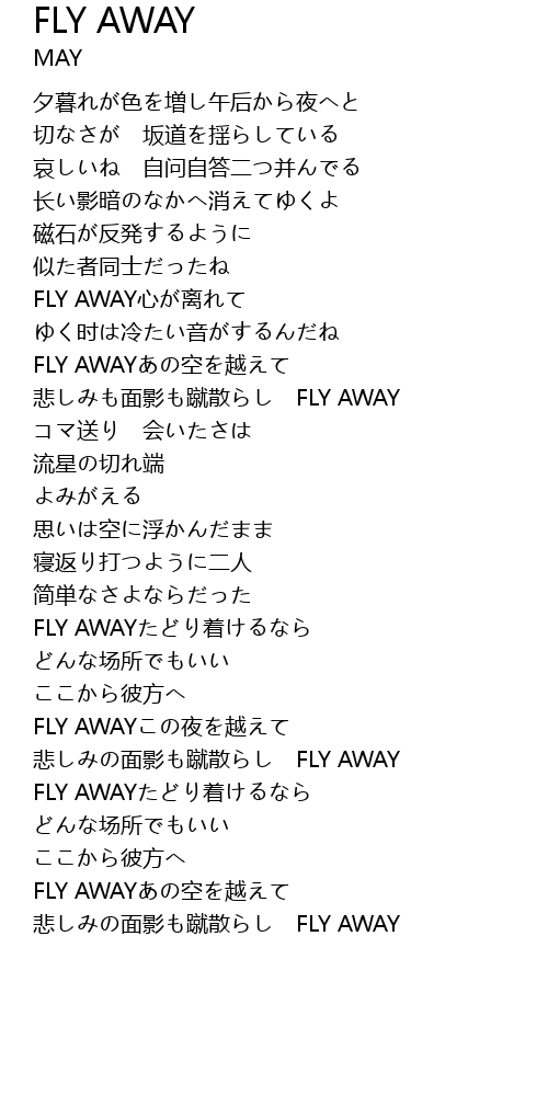 | [01:22.28] | FLY AWAYあの空を越えて |