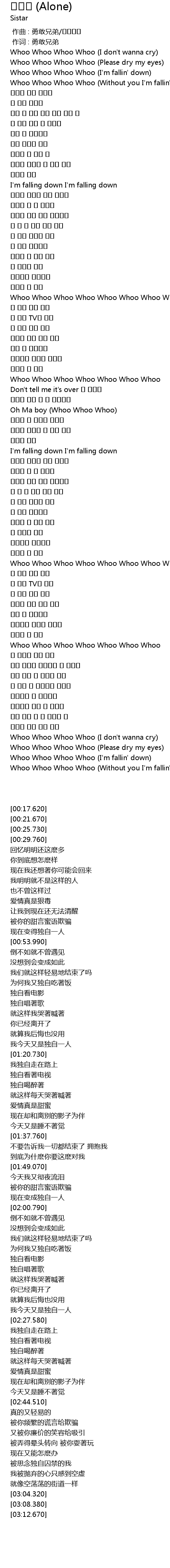 | [00:29.760] | Whoo Whoo Whoo Whoo (Without you I'm fallin' down) |