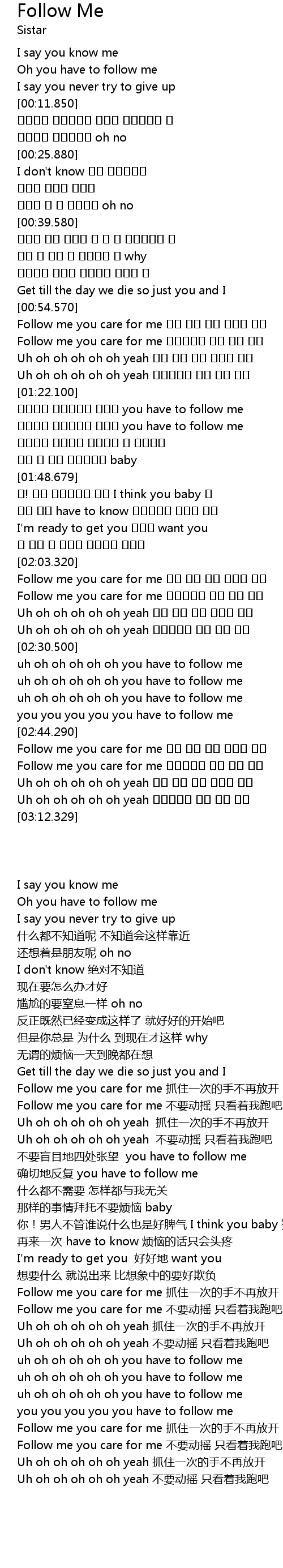 | [02:51.320] | Follow me you care for me 흔들리지마 나만 보고 뛰어 |