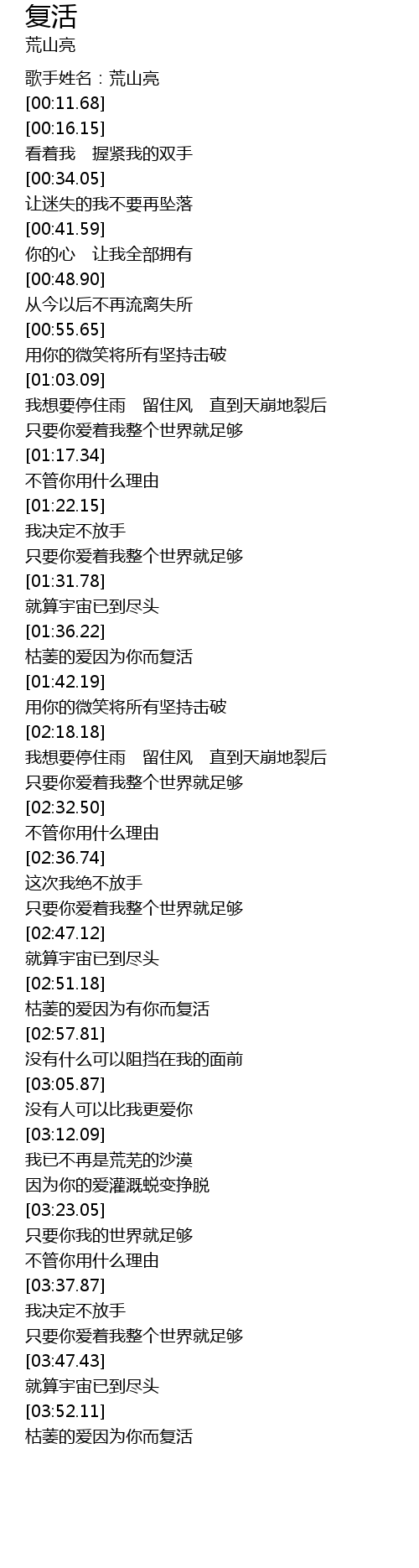 | [03:53.49] | 枯萎的爱因为你而复活 |