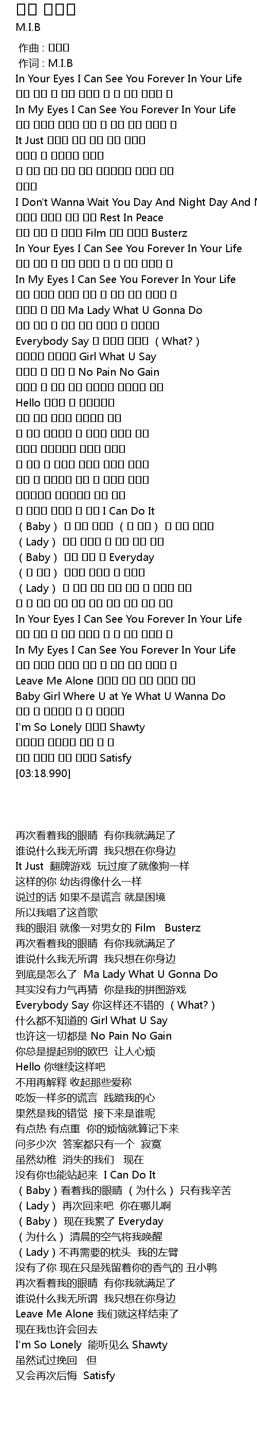 | [00:01.00] | 作词 : M.I.B |