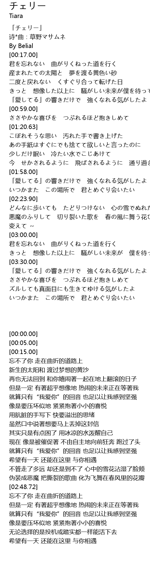 | [00:00.00] | 「チェリー」 |