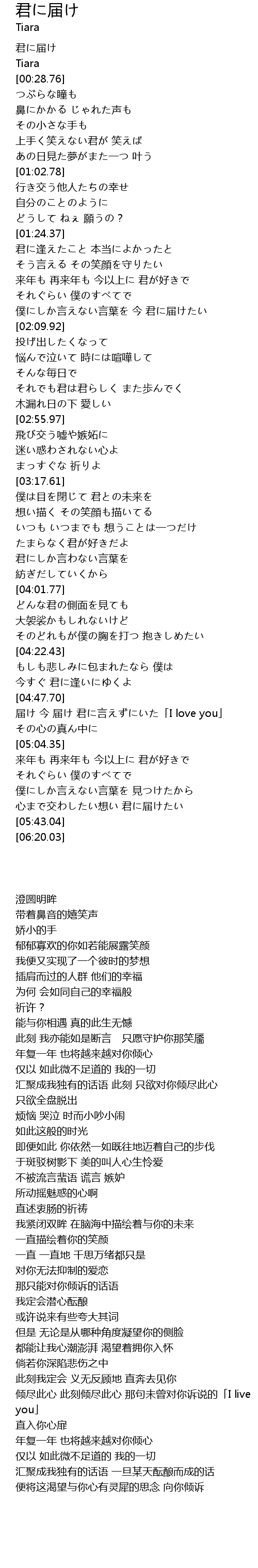 | [04:48.13] | 届け 今 届け 君に言えずにいた「I love you」 |