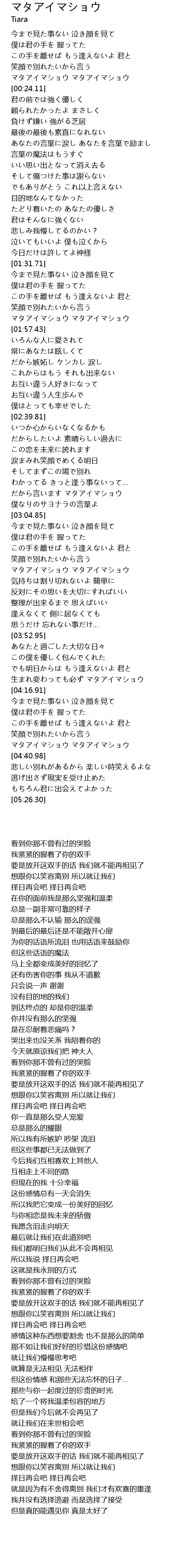 | [01:54.43] | マタアイマショウ マタアイマショウ |