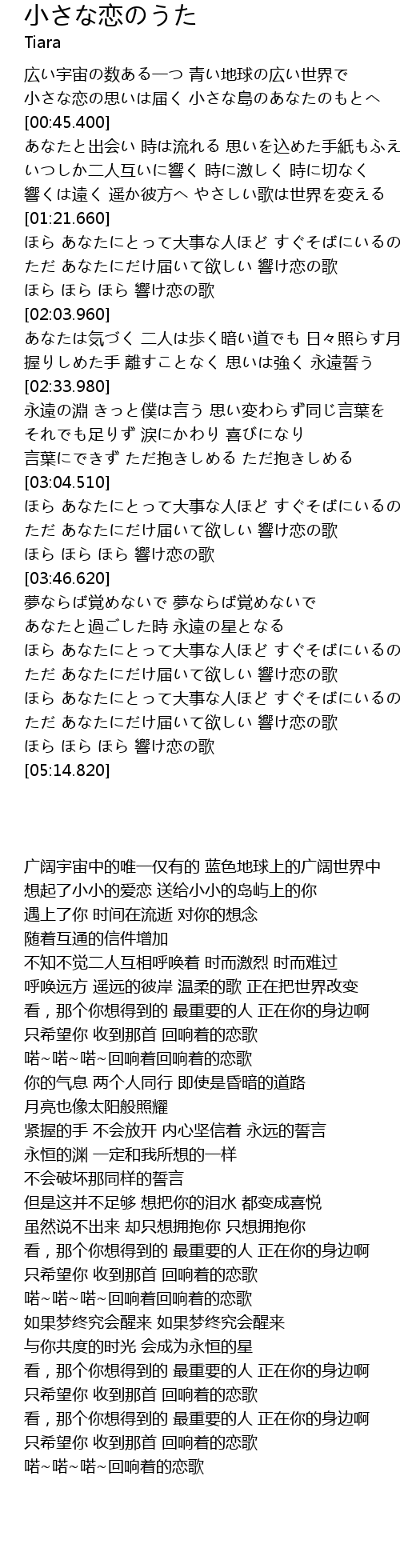 | [04:22.140] | ただ あなたにだけ届いて欲しい 響け恋の歌 |