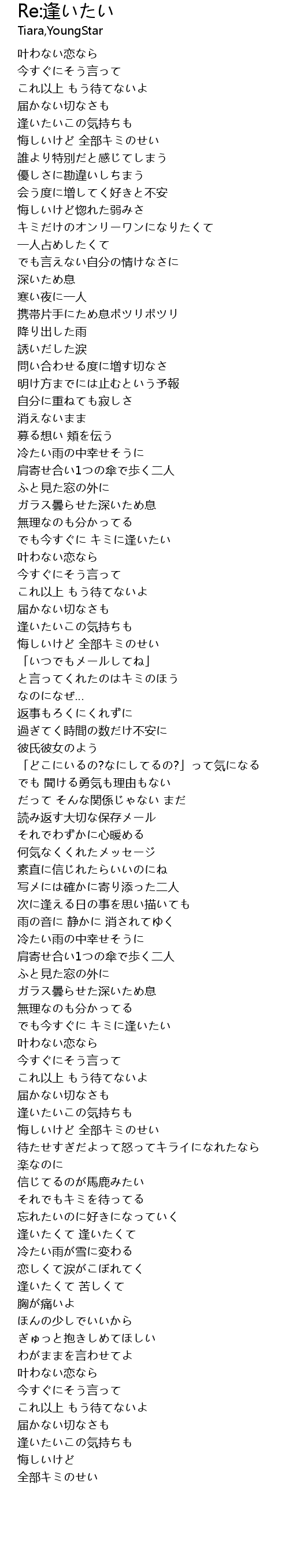 | [00:36.27] | 逢いたいこの気持ちも |