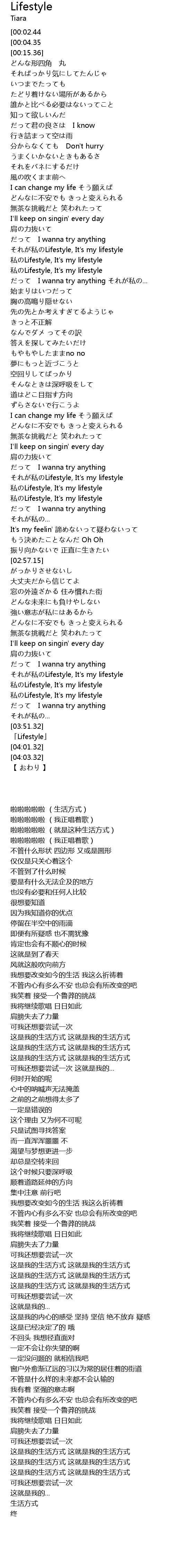 | [03:41.14] | 私のLifestyle, It's my lifestyle |