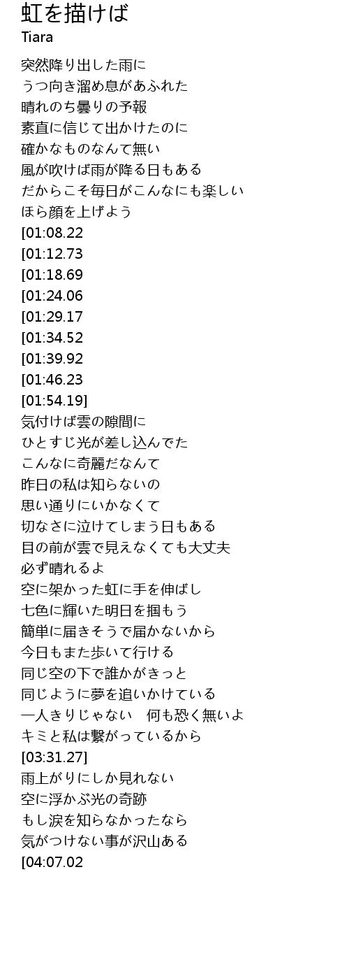 | [04:10.48][01:08.22] | 空に架かった虹イメージして |