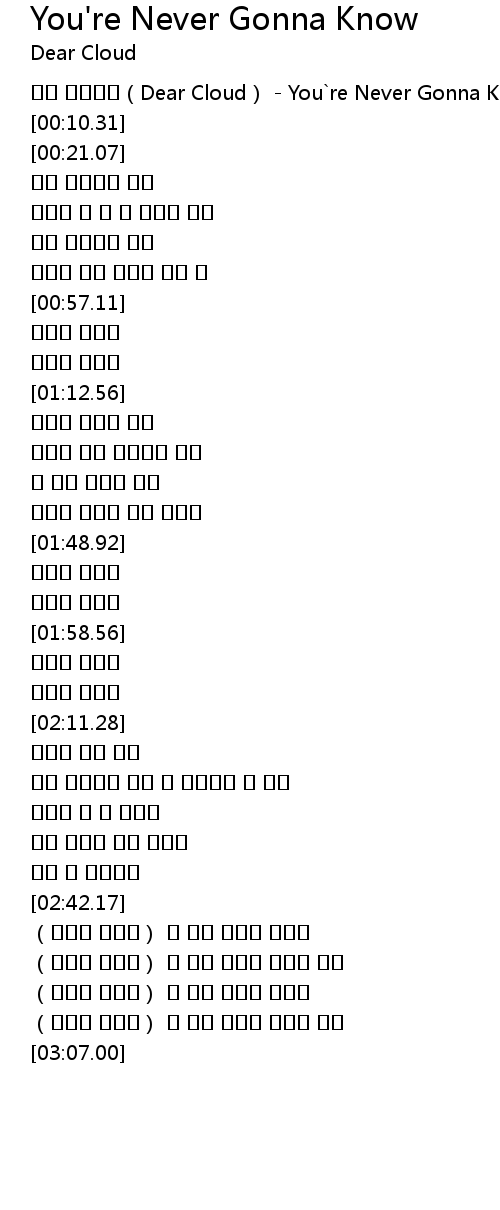 | [00:00.45] | 디어 클라우드(Dear Cloud) - You`re Never Gonna Know |