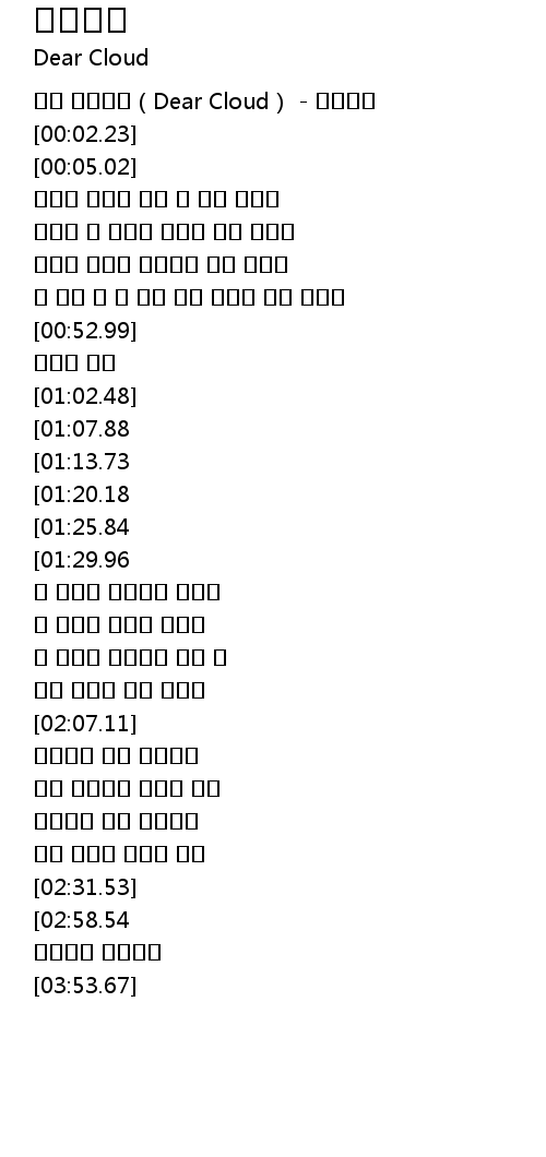 | [00:00.33] | 디어 클라우드(Dear Cloud) - 스쳐간다 |