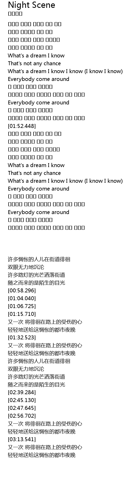 | [02:47.645] | What' s a dream I know I know I know I know |