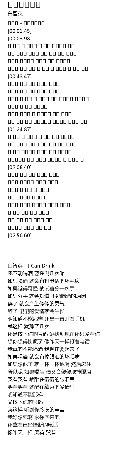 난 정말 못 마셔요 나 이제 그만 일어날래 |