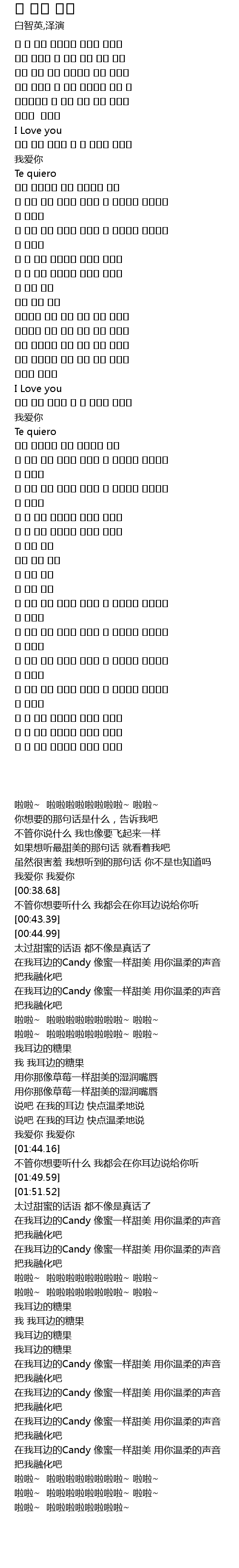 내 귀에 캔디 꿀처럼 달콤해 니 목소리로 부드럽게 날 녹여줘 |