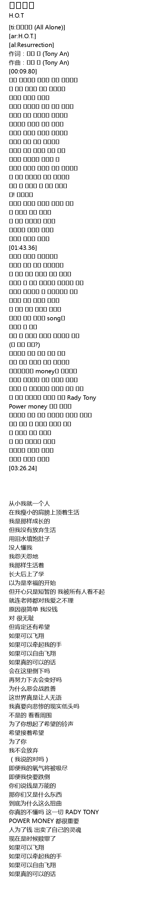 | [ti:홀로서기 (All Alone)] | |