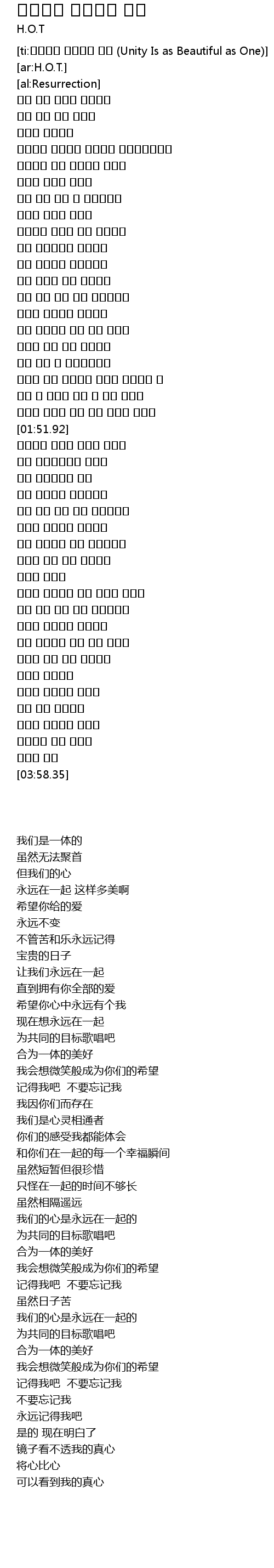 | [ti:하나라는 아름다운 느낌 (Unity Is as Beautiful as One)] | |