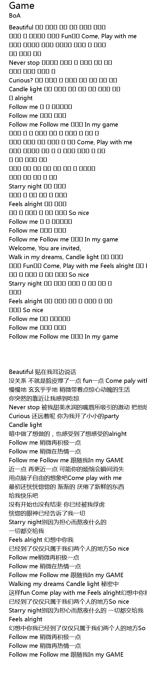 | [02:02.860] | Follow me Follow me 따라와 In my game |