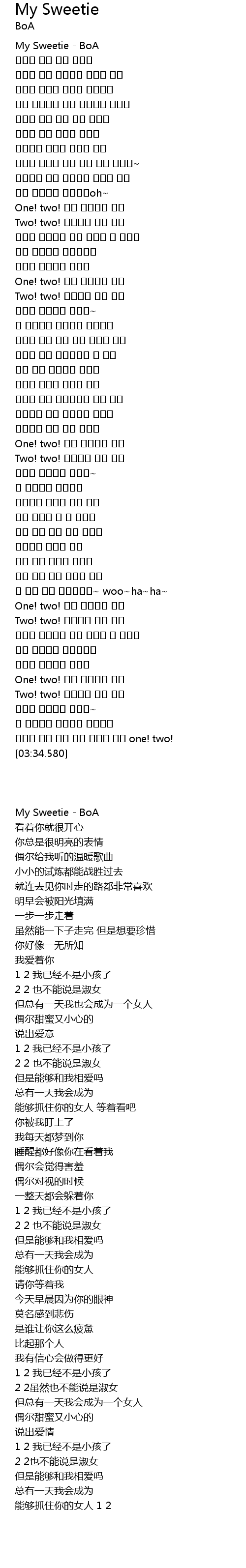 | [0-1:57.680] | My Sweetie BoA |