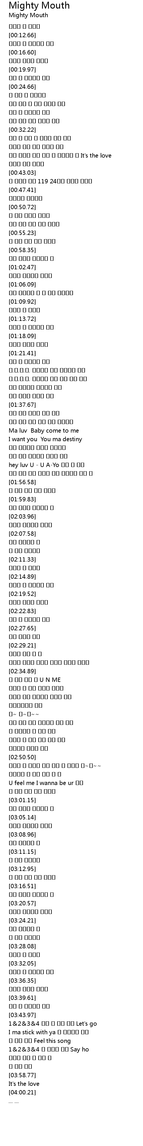 | [03:44.66] | 1&2&3&4 이제 내 손을 잡고 Let's go |
