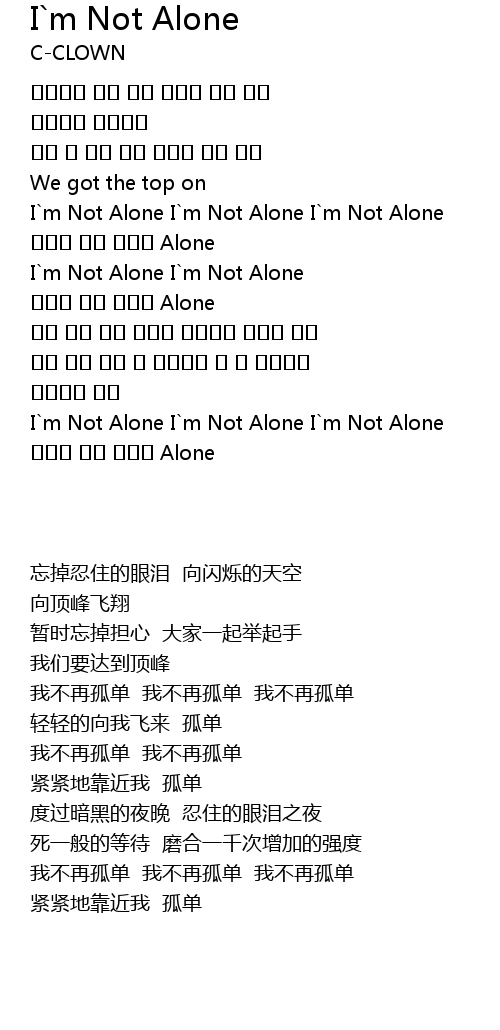 | [00:53.29] | I`m Not Alone I`m Not Alone I`m Not Alone |