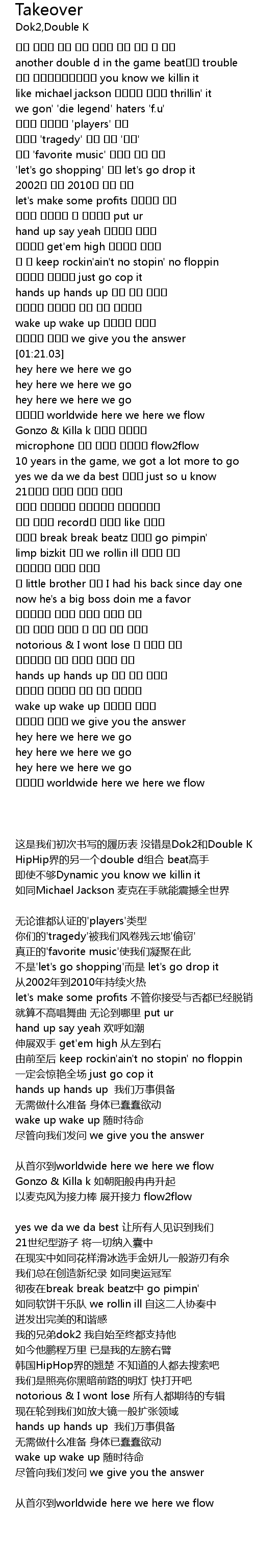| [01:06.43] | 앞 뒤 keep rockin'ain't no stopin' no floppin |