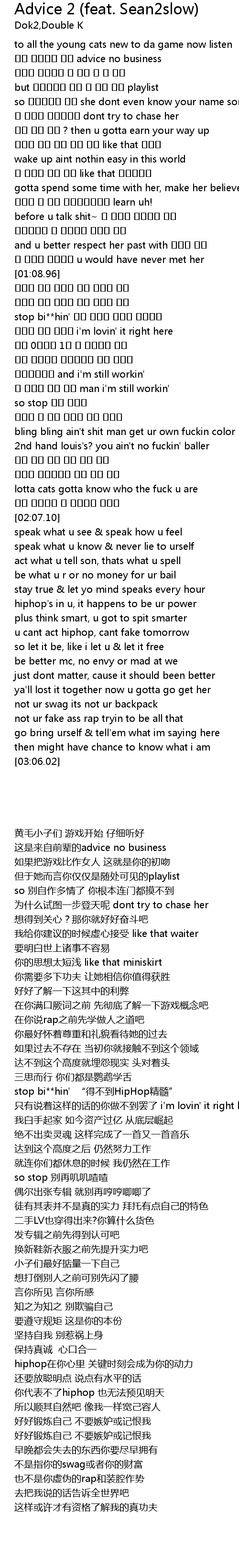 | [01:33.08] | stop bi**hin' 힙합 그런거 벌이는 안된다고 |