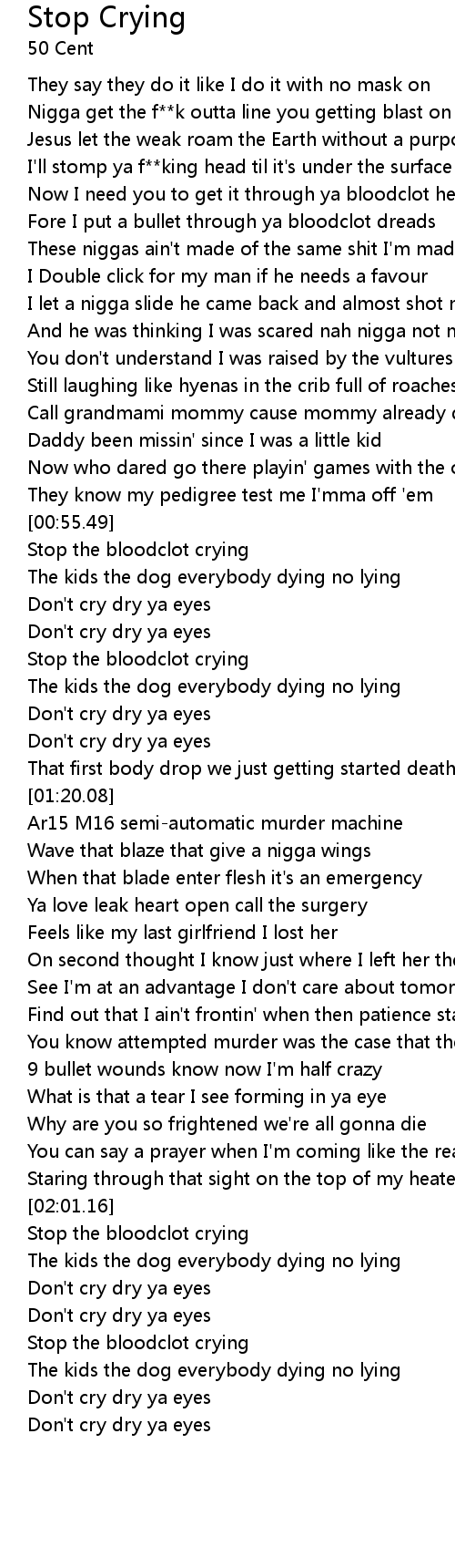 Stop the bloodclot crying |