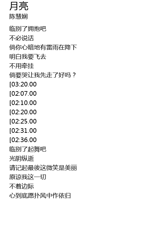 | [03:50.00][02:25.00][01:10.00] | 月儿离别像我心所想 |
