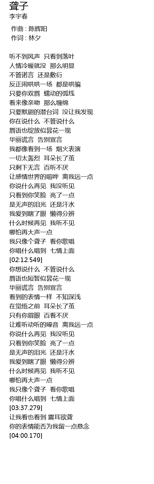 | [03:26.489] | 我只像个聋子 看你歌唱 |