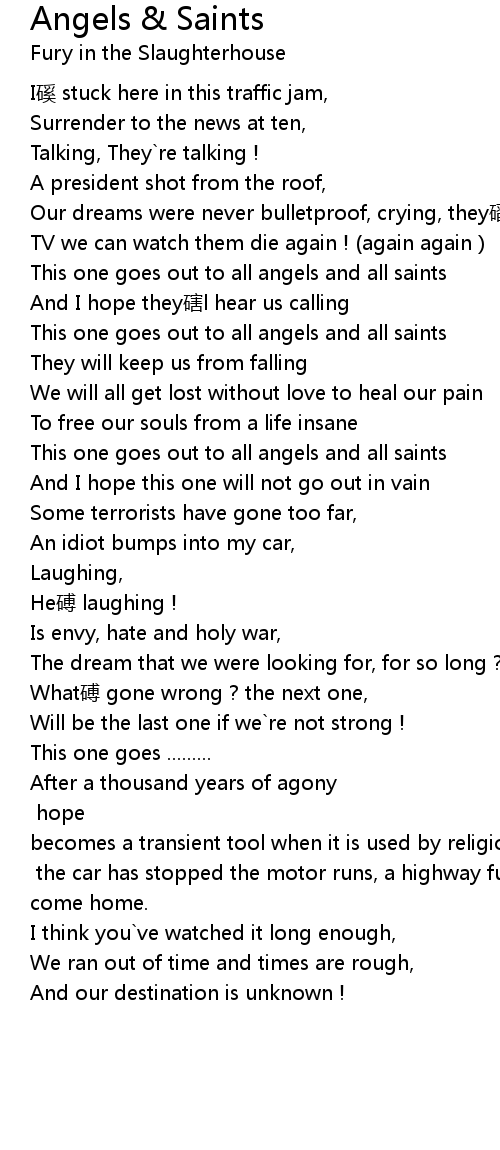 | This one goes out to all angels and all saints | |