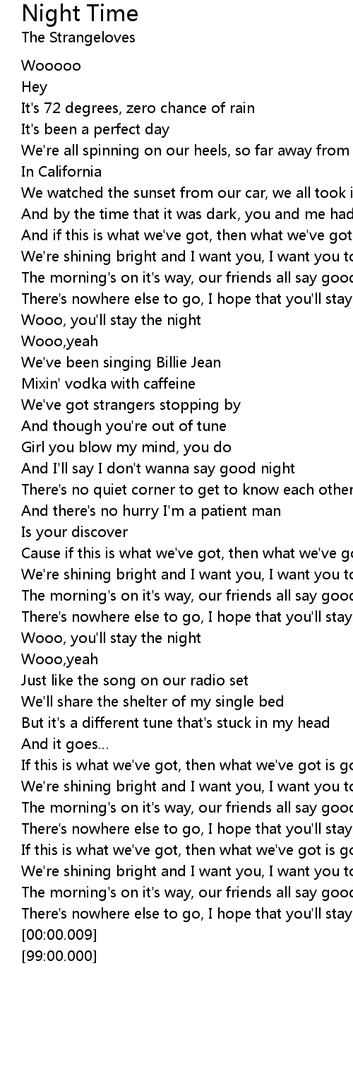 | [02:06.38] | There's nowhere else to go, I hope that you'll stay the night |