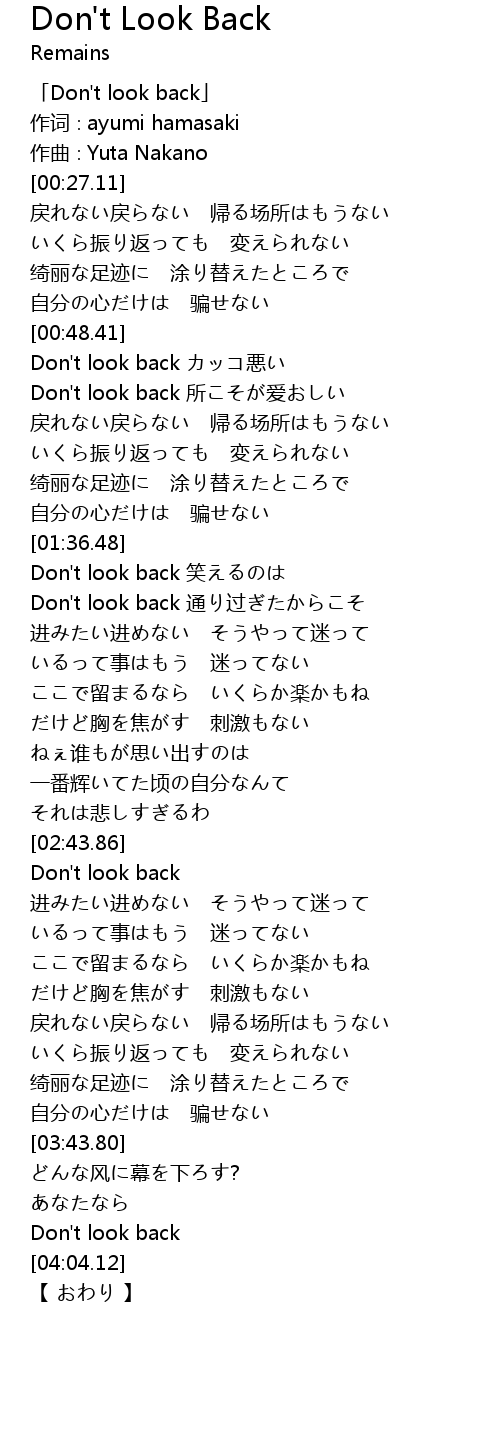 | [01:55.28] | Don't look back 通り过ぎたからこそ |