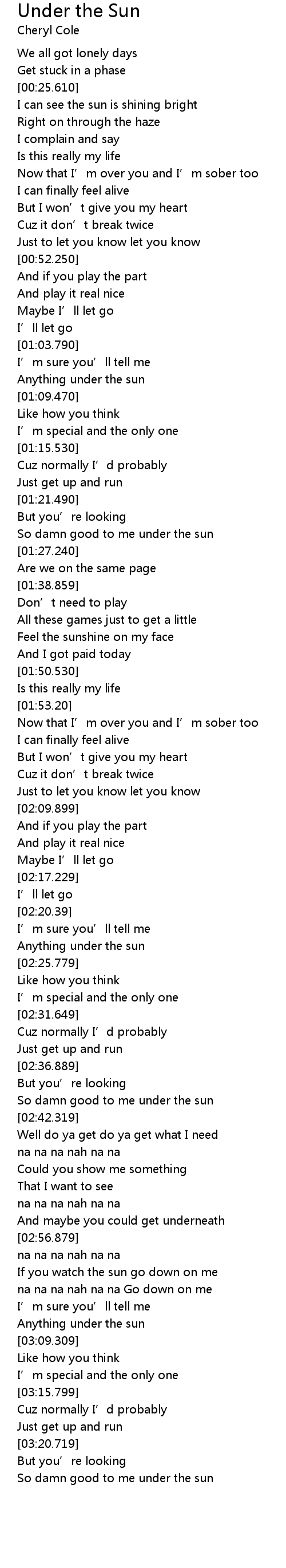 | [01:23.400] | So damn good to me under the sun |