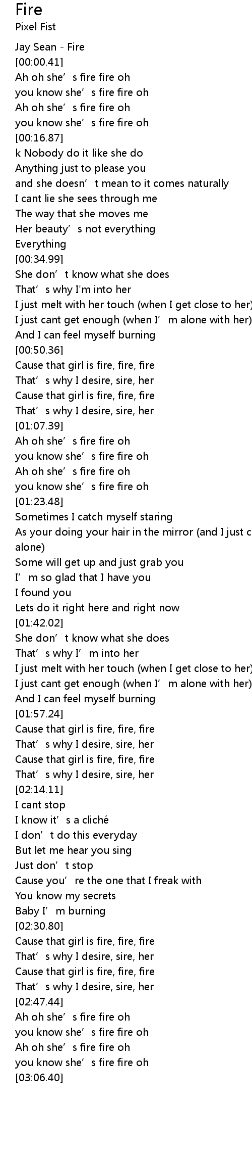 | [00:00.10] | Jay Sean - Fire |