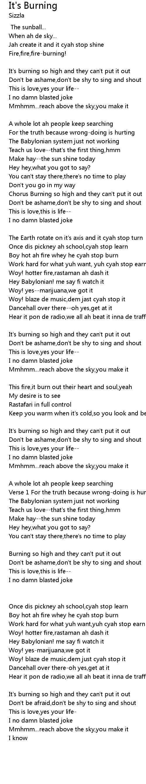 Chorus Burning so high and they can't put it out |