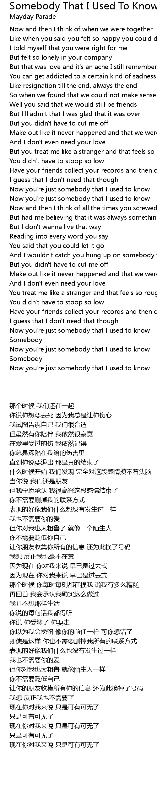 Now you're just somebody that I used to know |