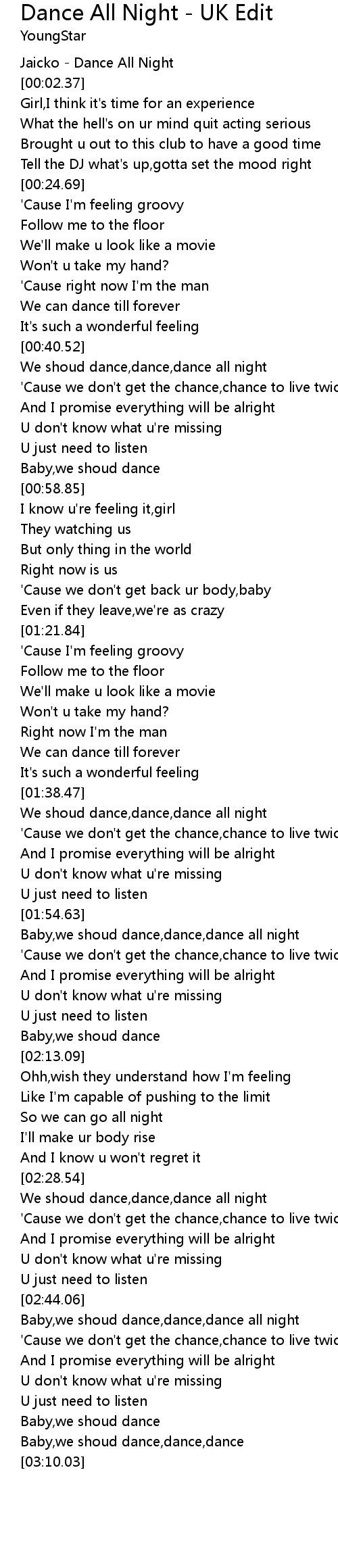 We shoud dance,dance,dance all night |