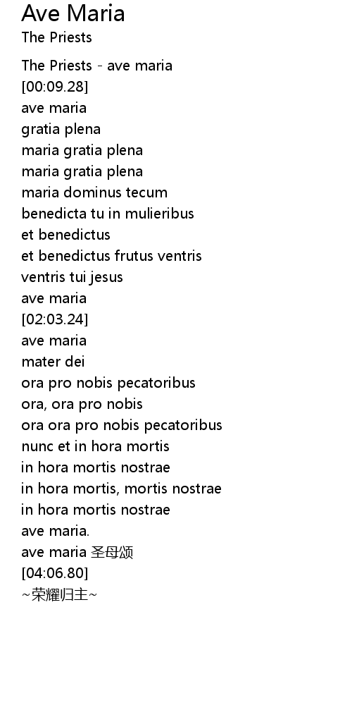 | [00:00.36] | The Priests ave maria |