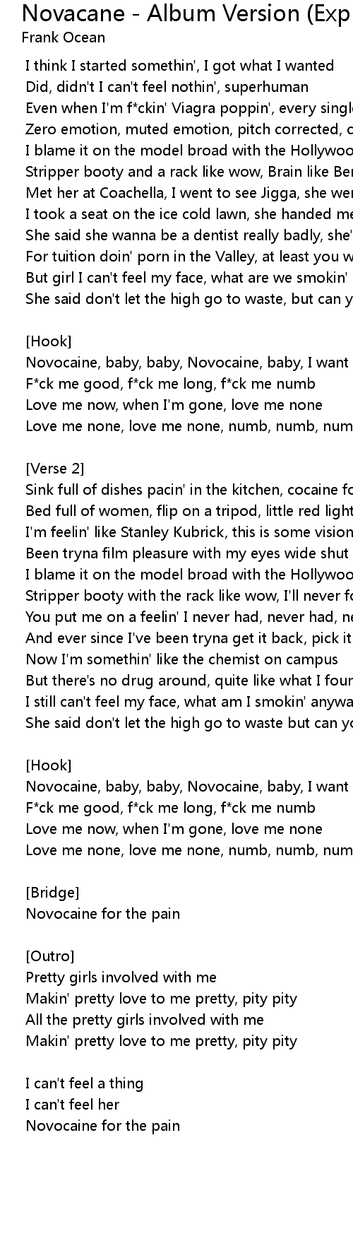Novocaine, baby, baby, Novocaine, baby, I want you