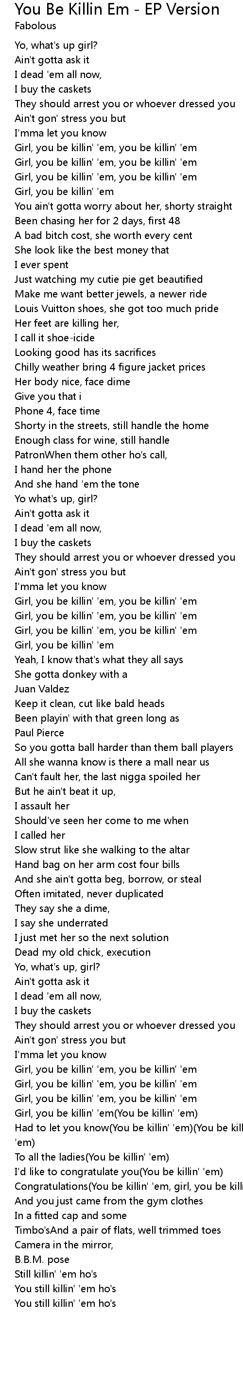 Had to let you know(You be killin' 'em)(You be killin' 'em, girl, you be killin' 'em) |