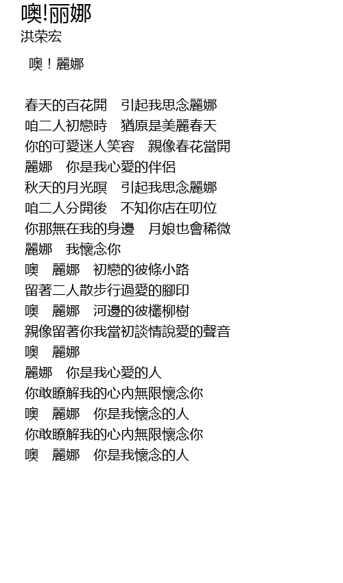 | 噢 麗娜 河邊的彼欉柳樹 | |