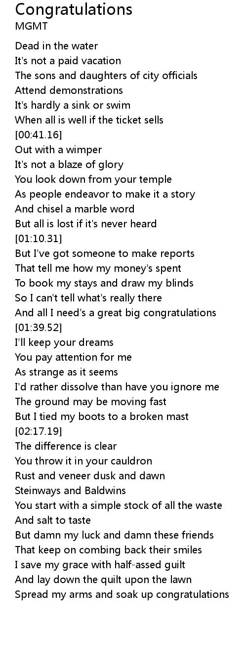And all I need's a great big congratulations |