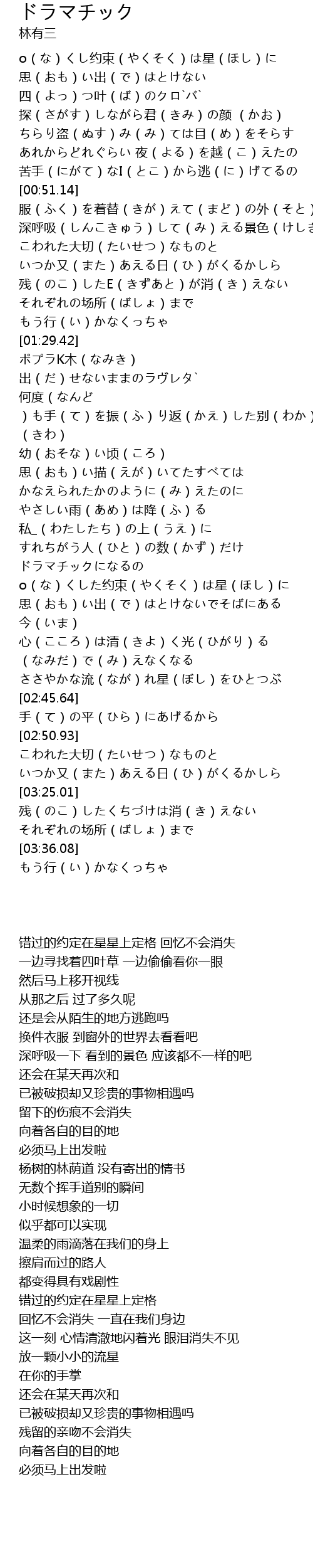 | [00:01.18] | o(な)くし约束(やくそく)は星(ほし)に 思(おも)い出(で)はとけない |